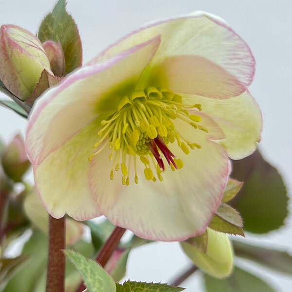 ミヨシクリスマスローズ:ニゲルハイブリッド エクリュフラミンゴ4.5号ポット(咲き進み〜開花終了株)エクリュフラミンゴは、新しいニゲルハイブリッドタイプ。大理石模様の光沢のある大きめの葉は、花がない時期でも葉模様を楽しめ、ガーデンにもよく映えます。花色は白からクリーム色へと変化し、縁に赤く色づくので開花の段階によって花色の変化も楽しめます。※メリクロン(組織培養)苗なので、実生苗と異なり花色もほぼ安定し親株に近い花が咲きます。タイプキンポウゲ科の耐寒性宿根草草丈20〜40cm開花期1〜4月 日照半日陰むき育て方:半日陰を好みます。庭植え、鉢植え、コンテナに合います。 秋から5月頃までが生育期なので、肥料はこの間に与えてください。夏は木の陰などで涼しく過ごさせてください。詳しい栽培方法は下記の栽培ガイドをご覧ください。※葉に黒い点などが現れていることがございますが、低温などの環境の変化によるものですのでご了承くださいませ。クリスマスローズ:ニゲルハイブリッド エクリュフラミンゴ4.5号ポット(咲き進み〜開花終了株)の栽培ガイドクリスマスローズの育て方と管理法11月のクリスマスローズのお手入れ10月のクリスマスローズのお手入れ9月のクリスマスローズのお手入れ8月のクリスマスローズのお手入れ7月のクリスマスローズのお手入れ12月のクリスマスローズのお手入れ1月のクリスマスローズのお手入れ2月のクリスマスローズのお手入れ3月のクリスマスローズのお手入れ4月のクリスマスローズのお手入れ5月のクリスマスローズのお手入れ6月のクリスマスローズのお手入れ可憐な花で庭を彩る「クリスマスローズ」