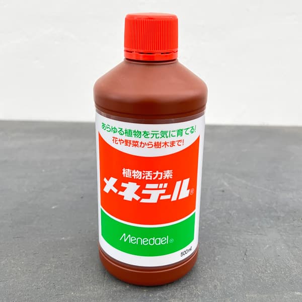 植え替えや株分けに・元気のない植物にメネデール500ml(園芸用活力剤)植え替え、挿し木、株分け、草勢・樹勢の回復など幅広い効果を発揮する「元気のお水」です。農園芸用の二価鉄イオン水溶液(鉄イオン水)で、挿し木や取り木の場合は発根を促し、また切花の場合は花瓶の水に溶かしておくと水あげがよくなり、長もちします。また、植え替えや株分けの際にも植物の活着を高めてくれます。観葉植物のハイドロカルチャー栽培の際に使用すると、植物の光合成を助け、草勢・樹勢を回復させてくれます。使用方法:花苗の植え付け時に、根元をメネデール100倍液(水2リットルにキャップ1杯)に5分ほど浸して植えたり、植え付け後100倍液をたっぷり根元にかけると、根の活着がよくなります。種まきの際にも同様に、種をメネデール100倍液に浸してからまいたり、種まき後に上から100倍液をたっぷりかけると生育が促されます。草花や花木・果樹の植え替えの際にも、根を100倍液に浸してください。植え付け後の追肥の際にも100倍液を併用して与えると、根づきがよくなります。挿木の際も、穂木の切り口を100倍液につけてからさします。弱った植物の根元にも100倍液をたっぷり与えると元気になります。水切れした観葉の鉢植えなどは、回復するまで100倍液を入れたバケツに鉢ごとつけておきます。根腐れの場合は、鉢から抜いて腐った根を取り除き、メネデール100倍液に一昼夜根をつけてから新しい土に植え替えます。500ml入りです。■この商品は液体のため、沖縄までのお届けはできません。 お届け先が沖縄県の場合、キャンセルさせていただきますので、ご了承ください。※写真はイメージです。メネデール500ml(園芸用活力剤)の栽培ガイド挿木でふやそう!挿し木の季節雪割草の栽培方法