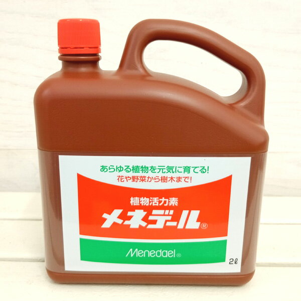 植え替えや株分けに・元気のない植物にメネデール2リットル入り(園芸用活力剤)メネデールは植え替え、挿し木、株分け、草勢・樹勢の回復など幅広い効果を発揮する「元気のお水」です。植物の生長に欠かせない鉄を、根から吸収されやすいイオンの形で含む植物活力素です。発根を促し、元気な株に育てます。肥料でも農薬でもないので毎日使え、さし木、種まき、植え付け、植え替えから弱った時の活力アップまで、あらゆる場面で活躍します。使用方法:花苗の植え付け時に、根元をメネデール100倍液(水2リットルにキャップ1杯)に5分ほど浸して植えたり、植え付け後100倍液をたっぷり根元にかけると、根の活着がよくなります。種まきの際にも同様に、種をメネデール100倍駅に浸してからまいたり、種まき後に上から100倍液をたっぷりかけると生育が促されます。草花や花木・果樹の植え替えの際にも、根を100倍液に浸してください。植え付け後の追肥の際にも100倍液を併用して与えると、根づきがよくなります。挿木の際も、穂木の切り口を100倍液につけてからさします。弱った植物の根元にも100倍液をたっぷり与えると元気になります。水切れした観葉の鉢植えなどは、回復するまで100倍液を入れたバケツに鉢ごとつけておきます。根腐れの場合は、鉢から抜いて腐った根を取り除き、メネデール100倍液に一昼夜根をつけてから新しい土に植え替えます。容量:2リットル入り■この商品は液体のため、沖縄までのお届けはできません。 お届け先が沖縄県の場合、キャンセルさせていただきますので、ご了承ください。※写真はイメージです。メネデール2リットル入り(園芸用活力剤)の栽培ガイド挿木でふやそう!挿し木の季節