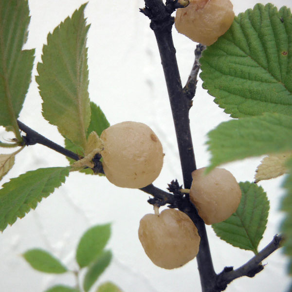ゆすら梅 甘い実が鈴なりにつく!花もきれいで花木におすすめ 果樹苗木果樹の苗/ユスラウメ:白実4〜5号ポット**珍しい白実のユスラウメ。ごく小さなスペースや鉢でもたくさんの収穫が楽しめる果樹です。自家結実性あり、白い実は鑑賞用に好まれます。赤実種と異なり、生食はできませんが、強い芳香を放つため、果実種やジャム、砂糖漬けに利用されます。結実の始めは実に赤みがさす場合がございます。暑さ寒さに強く、栽培は容易です。ニワウメよりも果実はやや大きめです。タイプ:耐寒性落葉低木植え時:真夏を除く周年(最適期は11月〜3月中旬)適地:特に土質は選びません。花期:3〜4月収穫:6月中旬〜下旬樹高:2〜3m栽培方法:日当たりと排水のよい場所に植えます。乾燥には強い方でして、逆に過湿による根腐れを起こしやすいので水の遣りすぎに注意します。有機肥料を元肥えとして施して植え付けます。鉢植え(6〜7号鉢)でも育てられます。剪定は冬季に込み合った枝を間引きします。新梢のわき芽が花芽になり、翌春に開花します。お届けする苗は4〜5号(直径12〜15cm)ポット植えの接木苗です。樹高はお届け時期により多少前後します。また、夏〜秋のお届け時は葉の状態がきれいでない場合があります。