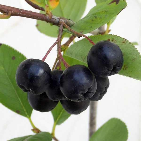 黒い実がたくさんつくチョコベリー 花木の苗果樹の苗/アロニア(チョコベリー): バイキング5号ポット小さな5弁の白花を咲かせ、ブルーベリーに似た黒い果実をつけます。果実にはアントシアニンを多く含み、健康食品やジャム、果実酒、アイスクリームなどに利用されています。果実はきれいで観賞用にもおすすめ。紅葉も美しい品種です。庭木、寄せ植え、ボーダー花壇にも適しています。バイキングは大実品種です。タイプ:バラ科の耐寒性落葉低木植付け期:2〜4月開花期:5月熟期:10〜11月樹高:1〜2m内外栽培方法:日当たりのよい場所に腐葉土などをすきこんで植え付けてください。鉢植えでも栽培できます。実が黒く熟したら収穫してください。お届けする苗は5号(直径15cm)ポット植え、樹高約30〜70cm前後です。樹高は多少前後することがあります。夏以降のお届けは葉がきれいでない状態、または落葉の状態の場合があります。 ■この商品は第二配送センターよりお届けします。下記サービスについてはお受けできません。・メッセージカード・栽培ガイドの添付・ラッピング・時間帯指定は地域によりご指定がお受けできない場合があります・配送業者の指定アロニア(チョコベリー): バイキング5号ポットの栽培ガイド7月のベリー類のお手入れ