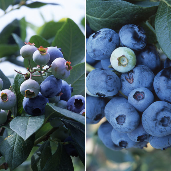 群馬県産品種 受粉樹セット 苗木果樹の苗/ブルーベリー:あまつぶ星とおおつぶ星2種4株セット3号ポット大人気の最新ブルーベリー国産品種、あまつぶ星とおおつぶ星のお得なセットです。収穫量を目指したい方に2品種それぞれ2本ずつをお得な価格で用意しました!あまつぶ星とおおつぶ星は日本で作出された初のブルーベリーとして話題になりました。寒さに強いハイブッシュ系ですが、平暖地でも栽培しやすく初心者の方でも育てやすい品種です。セット内容:ブルーベリー:あまつぶ星3号ポット2株ブルーベリー:おおつぶ星3号ポット2株品種について:従来のブルーベリーはすべて海外育成品種でしたが、「あまつぶ星」と「おおつぶ星」は日本ではじめて生まれた話題の品種。どちらも寒冷地向きのハイブッシュ系ですが、暑さにも強く、内陸部など夏場の気温が高くなる場所でも露地栽培できます。あまつぶ星は糖度が高くデザート感覚で食べられる甘さが自慢の品種です。おおつぶ星は大粒で食べ応えのある品種です。ほど良い酸味で生食でも美味しく食べられます。この2種は開花時期が同じですので、混植すると実付きが良くなります。タイプ:耐寒性落葉小高木樹高:1〜2m開花期:4月収穫時期:7〜8月(1〜2年後から収穫できます)収穫量:成木になると、1本から2〜3kgの実がとれます。日照:日向むき栽培方法:ブルーベリーは日当たりの良い場所で、有機質に富んだ湿った酸性土壌を好みます。鉢底に鉢底石を薄く入れ、ブルーベリーの土を入れて植えつけてください。乾燥に弱く根張りが浅いので、土の上は敷き藁などで保護します。水切れに弱いので、たっぷり水を与え、特に夏場は水切れしないように注意しましょう。肥料は成長期の3月と6月、9月に、ブルーベリー専用肥料や油粕・化成肥料を少なめに与えます。植えつけ後数年は強い剪定は避けます。花芽は新梢の先端につくので、新梢は切らないようにしましょう。開花時に近くで殺虫剤をまかないよう気をつけてください。果実は濃紫色になりポロリと落ちる直前が収穫適期です。開花期間が長いので、収穫も1ヶ月近く楽しめます。開花から収穫終了までは特に、水切れに注意してください。お届けする苗は3号(直径9cm)ポット入りの1年生苗です。翌年から花は付きますが、1〜2年は摘み取って結実させないようにし、株の充実を図ってください。樹高は、お届け時期により多少前後します。夏以降などお届け時期によりましては、葉がきれいでない状態の場合や落葉中〜落葉後となることがございます。冬季は落葉の状態となります。※品種登録されている品種ですので、無許諾で苗木等を増殖して販売することはできません。2021年4月施行の改正種苗法では、果実の販売も自家増殖となり、育成者権者の許諾が必要となります。※秋に落葉する品種ですが、昨今の猛暑の影響で初夏以降は葉焼けや斑点などがある状態〜落葉した状態となる場合があります。翌春以降にきれいな葉が出てきますがお届け時に葉が無い場合があります。ブルーベリー:あまつぶ星とおおつぶ星2種4株セット3号ポットの栽培ガイドブルーベリーの栽培方法紅葉おすすめの木魅力的な緑陰樹家庭果樹:すぐに収穫したい人へおすすめの品種