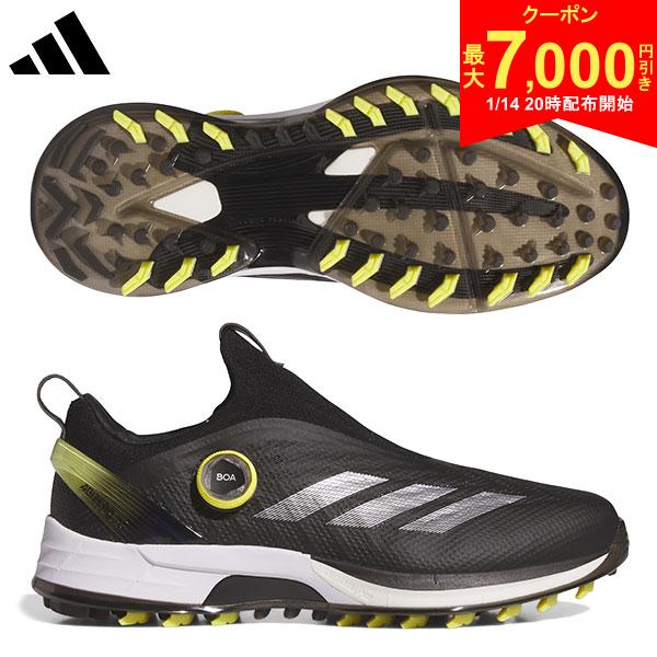 |標準幅 |スパイクレス |ダイヤル式この商品の特徴即日出荷スパイクレスシューズダイヤル式シューズ全体の構造から、スイングのエネルギーを増幅する軽量パワーギア。アグレッシブなフットワークを高次元でサポートする安定性と強いグリップ力を兼ね備え、同カテゴリーのツアーシューズと比べて約100gもの軽量化に成功。アッパー軽量で薄く、足のブレをさらに強力に制御する防水スプリントスキンアッパー。スプリントフレームやエンジニアードニットなどの異なる素材をアッパー全体にレイヤリングし、安定性とホールド力に優れたアッパー構造を採用することで重量が増えずに強く速いスイングをサポートする。ミッドソール超軽量で高反発なLIGHTSTRIKE PROを搭載。BOOSTと同等のクッション性能に加え、高反発性能によってスイング時に鋭い蹴りを可能にする。屈曲時の形状維持性能によって、高い推進力も誇る。ヒール周りには通常のLIGHTSTRIKEによって、さらに反発力を高めながら安定性を担保。DYNAMIC TORSION PLATEスイング時のパワーを増幅する足裏の特殊パーツ。 中足部アーチをホールドし、トルクコントロールをつま先までもたらすことでエネルギーロスを軽減。3本のブレードがLIGHTSTRIKE PROに接着され、相乗効果で推進力を高めることで、鋭い蹴りを可能にしながら歩行時の疲労を軽減。スパイクモアアウトソールスパイクとスパイクレスの長所を併せ持ち、歩行時とスイング時の性能を自動的に切り替わるテクノロジーがさらに進化。屈曲する外周のアームにより、軽快な歩行と驚異的なグリップ力を両立。中心部の特殊なラグ形状でダイナミックなフットワークを高次元でサポート。BOA + PRIMEKNIT革新的なアッパー内蔵型のクロージャー構造のサブサーフェス直足BOAラップを搭載。高伸縮素材のPRIMEKNITが足の形状に順応し、フィット感と通気性を向上。BOAのレースとパネルも内蔵され、ブレを抑えてアグレッシブなスイングをサポート。BOAパネルにもシークエンスレーシングとTRI-WRAP構造を採用し、安定性と順応性が大きく向上。スペック素材アッパー:合成皮革/合成繊維ミッドソール:EVA (LIGHTSTRIKE PRO)/EVA (LIGHTSTRIKE)アウトソール:合成底重量約355g(片足25.5cm)ラストツアーパフォーマンスラスト(EE相当)カラーコアブラック×シルバーメタリック×ピュアサルファ(IH9895)原産国中国発売日:2025年2月14日SHOES GUIDE最適なシューズ選びの参考にメーカー特徴 アディダス土踏まず・甲の部分はしっかりしたホールド感がありますが、足先の横幅に少しゆとりがあるモデルもあります。普段2Eなど平均的な足幅の方はフィットしますが足幅が広い方は+0.5cm大きめをおすすめします。adidas ADIZERO ゼッドジー BOA