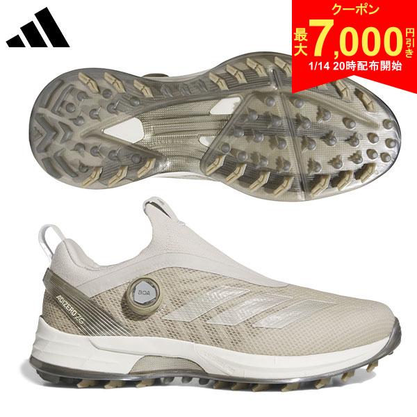 |標準幅 |スパイクレス |ダイヤル式この商品の特徴即日出荷スパイクレスシューズダイヤル式シューズ全体の構造から、スイングのエネルギーを増幅する軽量パワーギア。アグレッシブなフットワークを高次元でサポートする安定性と強いグリップ力を兼ね備え、同カテゴリーのツアーシューズと比べて約100gもの軽量化に成功。アッパー軽量で薄く、足のブレをさらに強力に制御する防水スプリントスキンアッパー。スプリントフレームやエンジニアードニットなどの異なる素材をアッパー全体にレイヤリングし、安定性とホールド力に優れたアッパー構造を採用することで重量が増えずに強く速いスイングをサポートする。ミッドソール超軽量で高反発なLIGHTSTRIKE PROを搭載。BOOSTと同等のクッション性能に加え、高反発性能によってスイング時に鋭い蹴りを可能にする。屈曲時の形状維持性能によって、高い推進力も誇る。ヒール周りには通常のLIGHTSTRIKEによって、さらに反発力を高めながら安定性を担保。DYNAMIC TORSION PLATEスイング時のパワーを増幅する足裏の特殊パーツ。 中足部アーチをホールドし、トルクコントロールをつま先までもたらすことでエネルギーロスを軽減。3本のブレードがLIGHTSTRIKE PROに接着され、相乗効果で推進力を高めることで、鋭い蹴りを可能にしながら歩行時の疲労を軽減。スパイクモアアウトソールスパイクとスパイクレスの長所を併せ持ち、歩行時とスイング時の性能を自動的に切り替わるテクノロジーがさらに進化。屈曲する外周のアームにより、軽快な歩行と驚異的なグリップ力を両立。中心部の特殊なラグ形状でダイナミックなフットワークを高次元でサポート。BOA + PRIMEKNIT革新的なアッパー内蔵型のクロージャー構造のサブサーフェス直足BOAラップを搭載。高伸縮素材のPRIMEKNITが足の形状に順応し、フィット感と通気性を向上。BOAのレースとパネルも内蔵され、ブレを抑えてアグレッシブなスイングをサポート。BOAパネルにもシークエンスレーシングとTRI-WRAP構造を採用し、安定性と順応性が大きく向上。スペック素材アッパー:合成皮革/合成繊維ミッドソール:EVA (LIGHTSTRIKE PRO)/EVA (LIGHTSTRIKE)アウトソール:合成底重量約355g(片足25.5cm)ラストツアーパフォーマンスラスト(EE相当)カラーワンダーアルミナ×サイバーメタリック×パテベージュ(IH9897)原産国中国発売日:2025年2月14日SHOES GUIDE最適なシューズ選びの参考にメーカー特徴 アディダス土踏まず・甲の部分はしっかりしたホールド感がありますが、足先の横幅に少しゆとりがあるモデルもあります。普段2Eなど平均的な足幅の方はフィットしますが足幅が広い方は+0.5cm大きめをおすすめします。adidas ADIZERO ゼッドジー BOA