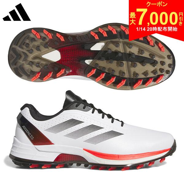 |標準幅 |スパイクレス |紐タイプこの商品の特徴スパイクレスシューズ紐タイプ取り寄せ商品につきましては、通常3-6営業日での出荷が目安となります。仕入れ先の在庫状況により変動致しますので確認後メールにて納期回答させて頂きます。シューズ全体の構造から、スイングのエネルギーを増幅する軽量パワーギア。アグレッシブなフットワークを高次元でサポートする安定性と強いグリップ力を兼ね備え、同カテゴリーのツアーシューズと比べて約100gもの軽量化に成功。シューレースモデルは3フランチャイズモデル中、最軽量モデル。アッパー軽量で薄く、足のブレをさらに強力に制御する防水スプリントスキンアッパー。スプリントフレームやエンジニアードニットなどの異なる素材をアッパー全体にレイヤリングし、安定性とホールド力に優れたアッパー構造を採用することで重量が増えずに強く速いスイングをサポートする。ミッドソール超軽量で高反発なLIGHTSTRIKE PROを搭載。BOOSTと同等のクッション性能に加え、高反発性能によってスイング時に鋭い蹴りを可能にする。屈曲時の形状維持性能によって、高い推進力も誇る。ヒール周りには通常のLIGHTSTRIKEによって、さらに反発力を高めながら安定性を担保。DYNAMIC TORSION PLATEスイング時のパワーを増幅する足裏の特殊パーツ。 中足部アーチをホールドし、トルクコントロールをつま先までもたらすことでエネルギーロスを軽減。3本のブレードがLIGHTSTRIKE PROに接着され、相乗効果で推進力を高めることで、鋭い蹴りを可能にしながら歩行時の疲労を軽減。スパイクモアアウトソールスパイクとスパイクレスの長所を併せ持ち、歩行時とスイング時の性能を自動的に切り替わるテクノロジーがさらに進化。屈曲する外周のアームにより、軽快な歩行と驚異的なグリップ力を両立。中心部の特殊なラグ形状でダイナミックなフットワークを高次元でサポート。スペック素材アッパー:合成皮革/合成繊維ミッドソール:EVA (LIGHTSTRIKE PRO)/EVA (LIGHTSTRIKE)アウトソール:合成底重量約350g(片足25.5cm)ラストツアーパフォーマンスラスト(EE相当)カラーフットウェアホワイト×ルシッドレッド×コアブラック(IE3530)原産国中国発売日:2025年2月14日SHOES GUIDE最適なシューズ選びの参考にメーカー特徴 アディダス土踏まず・甲の部分はしっかりしたホールド感がありますが、足先の横幅に少しゆとりがあるモデルもあります。普段2Eなど平均的な足幅の方はフィットしますが足幅が広い方は+0.5cm大きめをおすすめします。adidas ADIZERO ゼッドジー