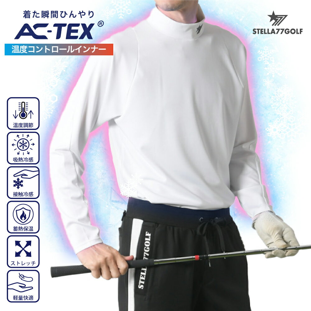 【 STELLA77GOLF 】 ゴルフをもっと楽しく プレイもお洒落も楽しむ ゴルフに欠かせない機能性に 大人の遊びごころを加え 機能性ファッション性を重視した プレイを引き立てる ゴルフウエアを提案 【商品詳細】 「STELLA77GOLF」 ACTEX ラグラン モックネック 長袖インナーが新登場 体温変化に応じて衣服内の温度を調整する 温度コントロール素材「ACTEX」を採用した高機能インナー。 暑い時は余分な熱を吸収し、ひんやり快適。 寒い時は熱を蓄え、暖かさをキープします。 さらに接触冷感機能により、 着た瞬間ひんやりとした爽やかな着心地を実感。 吸水速乾性にも優れ、汗を素早く拡散し ベタつきを抑えて快適な状態を保ちます。 肩周りの動きを妨げにくいラグランスリーブ設計と 体にフィットするストレッチ素材で、 スイングなどの動きもスムーズ。 首元をカバーするモックネック仕様で、 ゴルフシーンでも快適に着用できる 機能性インナーです。 ■モデル:MENS:KOJI 180cm (Lサイズ着用) LADYS : RIO 166cm (Mサイズ着用) ■サイズ:M・L・XL・XXL ■カラー:ホワイト・ブラック ■素材:ナイロン74%ポリウレタン26%【 STELLA77GOLF 】 ゴルフをもっと楽しく プレイもお洒落も楽しむ ゴルフに欠かせない機能性に 大人の遊びごころを加え 機能性ファッション性を重視した プレイを引き立てる ゴルフウエアを提案 【商品詳細】 「STELLA77GOLF」 ACTEX ラグラン モックネック 長袖インナーが新登場 体温変化に応じて衣服内の温度を調整する 温度コントロール素材「ACTEX」を採用した高機能インナー。 暑い時は余分な熱を吸収し、ひんやり快適。 寒い時は熱を蓄え、暖かさをキープします。 さらに接触冷感機能により、 着た瞬間ひんやりとした爽やかな着心地を実感。 吸水速乾性にも優れ、汗を素早く拡散し ベタつきを抑えて快適な状態を保ちます。 肩周りの動きを妨げにくいラグランスリーブ設計と 体にフィットするストレッチ素材で、 スイングなどの動きもスムーズ。 首元をカバーするモックネック仕様で、 ゴルフシーンでも快適に着用できる 機能性インナーです。 ■モデル:MENS:KOJI 180cm (Lサイズ着用) LADYS : RIO 166cm (Mサイズ着用) ■サイズ:M・L・XL・XXL ■カラー:ホワイト・ブラック ■素材:ナイロン74%ポリウレタン26% ※注意※ 色がある場合、モニターの発色の具合によって実際のものと色が異なる場合がございます   M L XL XXL 裄丈 78cm 79cm 80cm 81cm 身幅 49cm 51cm 53cm 55cm 着丈 68cm 70cm 72cm 74cm ご注意 ※商品によって1〜2cmの誤差がある場合がございます。 シルエット 肩周り ゆったり タイト 身幅 ゆったり タイト アーム 太め 細め 着丈 長い 短い 生地 厚さ 厚い 薄い 肌触り 硬い 柔らかい 伸縮性 無い ある 透け感 透けない 透ける Mサイズを着用 普段はSサイズを着用することもあり。体に程よくフィットするサイズ感で、インナーとしてちょうど良い着心地です。袖丈は手首付近で収まり、着丈も長すぎず短すぎないバランスの良い長さでした。着た瞬間ひんやり感があり、さらっとした肌触りで快適です。 Mサイズを着用 インナーらしいフィット感のあるサイズでした。ストレッチ性があるのでスイング時の動きにくさは感じません。AC-TEX素材は汗をかいてもベタつきにくく、ラウンド中も快適に感じました。 Lサイズを着用 普段はLサイズを着用しています。Lサイズでジャストな感じです。全体的に程よくフィットするイズ感です。肩周りや腕周りも窮屈感はなく、ラグラン仕様で動きやすい印象。着丈はやや余裕があり、インナーとして使いやすい長さでした。さらっとした着心地で、暑い日でも快適に着られそうです。 XLサイズを着用 XLサイズを着用。普段はXLサイズを着用しています。XLサイズでジャストな感じです。程よく体にフィットするサイズ感で、インナーとして快適に着用できます。袖丈・着丈ともにバランスが良く、動いたときも窮屈感は感じませんでした。 ストレッチ性があるためゴルフなどアクティブなシーンにも適した素材だと思います。 キーワード: STELLA77GOLF ブランド ゴルフインナー ゴルフインナー長袖 ゴルフインナーメンズ ゴルフモックネック モックネックインナー ゴルフアンダーシャツ ゴルフアンダーウェア メンズインナー メンズインナー長袖 スポーツインナー スポーツインナー長袖 スポーツアンダーシャツ コンプレッションインナー ゴルフウェア ゴルフウェアメンズ メンズゴルフウェア ゴルフ用インナー ラウンドインナー 夏ゴルフインナー 春ゴルフインナー 秋ゴルフインナー 接触冷感 冷感インナー ひんやりインナー 涼しいインナー クールインナー 冷感長袖 温度調整 温度コントロール 温度調整インナー 高機能インナー 機能性インナー 吸水速乾 速乾インナー ドライインナー ストレッチインナー 伸縮インナー 動きやすいインナー ラグランスリーブ ラグランインナー モックネック長袖 長袖モックネック ゴルフモックネック長袖 ゴルフ長袖インナー ACTEX AC-TEX素材 高機能素材 冷感素材 温度調整素