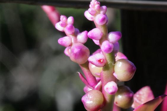 コメント:見た目、つぼみのままで咲かないない感じ。花には花弁がなく5個の萼片も全部は開かないのだそうです。