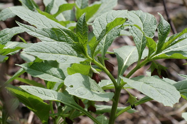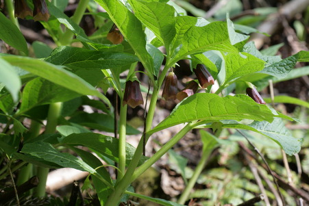 コメント:高さ50cm程度。春に開花。瞳孔を拡大させるアトロピンや神経毒のスコポラミンを含む。