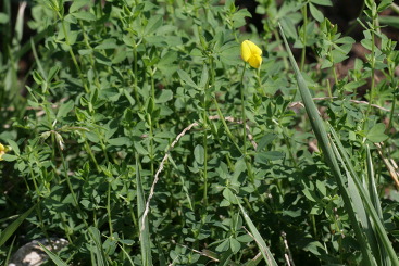 コメント:道端や草地に見られる多年草。高さ30cm程度。葉は3出複葉。葉腋に黄色の花を1-3個つける。