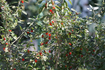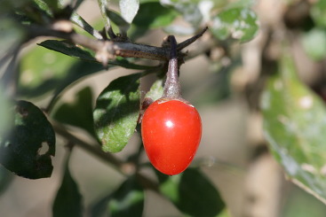 コメント:秋に卵型の赤い実をつけます。この実が健康によいということでクコ酒とかクコ茶とかに利用される。