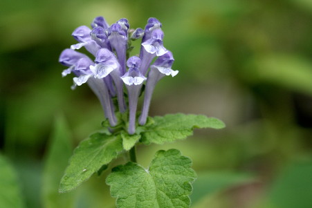 コメント:多年草。高さ20cm程度。葉は長さ3cm程度の卵状三角形。両面にあらい毛があり、縁には鋸歯がある。