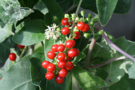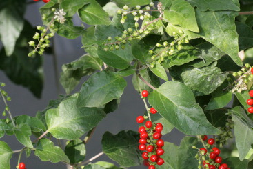 コメント:ジュズサンゴは、ヤマゴボウ科の多年草である。帰化状態に野生化したジュズサンゴを小笠原諸島で見ることが出来る。