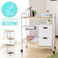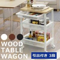 キッチンワゴン キャスター付き キッチンラック 作業台 / 引出付 ウッドテーブルワゴン 3段 2,580円 |