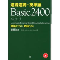 速読速聴・英単語 Basic 2400 ver.3 単語1900+熟語500 <br>ISBN10:4-86290-161-1 ISBN13:978-4-86290-161-3 著作:松本茂 監著/Gail Oura、Robert Gaynor 著 出版社:Z会 発行日:2015年3月9日 仕様:二色刷/四六変型判/424頁/CD 2枚 対象:一般向 ネイティブ・スピーカーが書き下ろしたオリジナル英文をじっくり読みながら、英語力の屋台骨とも言える中学〜高校初級程度の教科書レベルの単語・熟語・表現を総復習することができます。 さらに、学校では教わらなかった(しかしネイティブなら子供でも知っている)生活基本語彙も同時に身につきます。 Part Iでは中学校で学ぶ900語を掲載。 ほとんどの教科書に登場する重要単語をすべてカバーしています。 素材はもちろんすべてネイティブによる書き下ろし。 生きた英語で中学英語を総復習できます。 「白菜」を英語で言えるでしょうか?このように、英語で何と言うか、意外にも知らない単語は多いものです。 改訂にあたり、グループ別にまとめて覚えやすいように様々な単語を掲載しました。