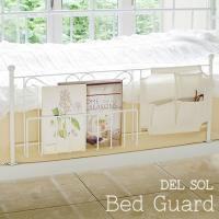 北海道・沖縄・離島へのお届けは、別途送料がかかります。 曲線が美しい、スパニッシュテイストのアイアンシリーズ『DEL SOL(デル・ソル)』の可愛いベッドガード。 寝ている間に掛け布団が落ちる…子どもの寝相が悪くベッドから落ちていないか心配…そんなお悩みを解決♪ ティッシュケースが入りティッシュが取り出しやすいポケット、雑誌や新聞が収納できる可動棚、リモコンやドリンクボトルが収納できるポケットがついた優れものです。 幅84×奥行き52×高さ46cm スチール(エポキシ樹脂粉体塗装)、綿 ブラック、ホワイト 組立式(約5分) ※厚みのあるマットレス(10cm〜)、段差の無いベッドでご使用ください。