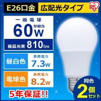 LED電球 E26 60W形相当 2個セット 広配光タイプ 照明器具 天井 LDA7N-G-6T22P・LDA8L-G-6T22P アイリスオーヤマ (あすつく) 1,480円 |