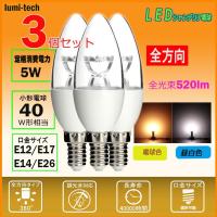 LED シャンデリア球 調光器対応 360度 全体発光 消費電力5W 口金E12/E14/E17/E26 40W相当 480LM 電球色3000K 1,425円 |