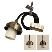 ■白熱灯・電球形蛍光灯用、LED電球用、陶器製ペンダント器具。 日本製。 陶器製のソケットが何やらノスタルジックな 雰囲気をかもし出します。 シェードを取付けるニップルは付いていないタイプです。 コード長はご利用に応じて特注にて変更承ります。 電球別売。 モーガルソケット ■対応電球(別売):E-26白熱灯・電球形蛍光灯・LED電球×1 100W形まで ■スイッチは付いておりません。 壁スイッチ等をご利用下さい。 ■コード長:30cm(BK:黒コードWH:白コード):キャブタイヤコード(ビニール製) |