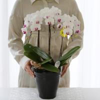 お手頃サイズの胡蝶蘭です。 プレゼントにも、最適ですが、ご自宅用にもちょうどいいサイズです。 ※鉢のお色は、写真ですと白い鉢になりますが、時期によりお色は変わりますので、ご了承ください。 また、ご指定をいただくことも、できませんので、重ねてご了承ください。 送料無料でお届けいたします。 ※一部対象外地域もあります。 プレゼント用で、ラッピングもいたしますので、ご要望欄にご記入ください。
