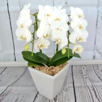 誕生日プレゼントや開店祝い等のフラワーギフトやお供えお悔やみに日持ち抜群のミニ胡蝶蘭・ミディホワイト 2本立ち 5,724円 |
