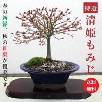 モミジ盆栽の中でも人気のある清姫もみじです。 葉が細かく、成長も緩やかなので初心者の方でも育て易い品種です。 春から夏にかけては清々しい緑の葉を、秋には紅葉をお部屋の中で楽しめます。 鉢は上品な信楽焼。 苔・石をあしらい、まるで岡に立つ大木の様です。 詳しい育て方説明書をお付けしますので、安心してお買い求め下さい。 メッセージをご希望の方は無料でお付けします。 ☆数量もの為、若干の樹形・サイズに違いがあります☆ 注:環境により紅葉しない場合があります。 注:メセージカードのデザインが変わる場合があります。 注:画像の置物は飾り付けイメージです。 商品には含まれません。 ☆サイズ☆ 全体サイズ(鉢含)高さ25〜30cm前後 幅25〜30cm前後 鉢サイズ 高さ8cm 幅・奥行18cm ヤフーショッピング(個人)のシステム上、配達希望日時指定、メッセージの記入欄がございません。 ご希望の方は、お手数ですがページ上段にある「お問い合わせ」よりお知らせ下さい。