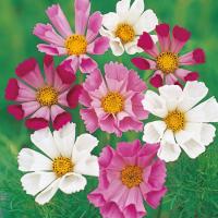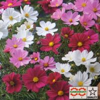 一名「あきざくら」と称され春はサクラ、秋はコスモスと言われる程有名で美しい花です。 花期も極めて長く、暖地では5月上旬頃より霜の降る頃まで次々と色鮮やかな花を咲かせます。 本種は特に早咲きの優良種を各色(紅・白・桃・蛇の目など)混合したもので花壇、鉢植に最適。 又花保ちよく切り花にも好適。