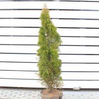 ■品種の特徴常緑樹。 “スラマグド”ともいわれます。 エメラルドゴールドとも言います。 ニオイヒバの仲間です。 強健な品種で生垣に向いています。 春から夏は美しい濃緑色で、冬は少しベージュがかります。 枝葉からトロピカルな香りを放ちます。 年間20〜30cm位生長し、樹高3〜5mになります。 ■苗木の形状商品はポットも含め高さ約1.2m。 2本まで同梱可能。