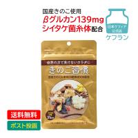 6種類の国産きのこを配合!負けない体へ。 ■6種類の国産きのこでβグルカン139mg+健康成分 ■ 国産きのこ6種類を配合し、1日5粒でβグルカン139mg! アガリクス(姫マツタケ)、ヤマブシダケ、タモギダケ、ハナビラタケ、マイタケ、シイタケの持つ健康成分を凝縮しました。 ■6種の国産きのこ ■ アガリクス(ヒメマツタケ) 活性を上げます 山伏茸 5種類の多糖類が摂れます たもぎ茸 ベーターグルカン、キシロール、エルゴチオネインが摂れます 花びら茸 1→3結合のβグルカンを豊富に含有しています 舞茸 MDフラクション、MXフラクションが摂れます 椎茸 10個分の菌糸体が摂れます ■しいたけ10個分のシイタケ菌糸体 ■ しいたけの栄養成分がギュッと詰まった菌糸体部分を使用しました。 国産きのこが持つ、健康パワーを是非お試しください。