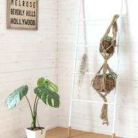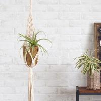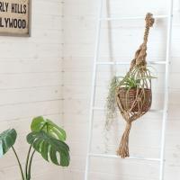 マクラメという結い技法を用いて編まれたプラントハンギングです。 プランターだけでなく、ガラスベースやカゴなどを入れて吊るしたり掛けたりと、グリーンのあるインテリアを楽しめます。 寒い時期に植物を室内へ移動させ、窓際で日光浴させるには最適なプランターハンギング。 観葉植物、エアプランツ、多肉植物などはもちろん、造花やドライフラワー,プリザーブドフラワーと組み合わせても素敵です。 南国/ハワイ/マリン/サーフ/カリフォルニアテイストのインテリアに合わせるとピッタリの小物です。 ロンハーマンやダブルティーの雰囲気がお好きな、海を感じるインテリアでコーディネートされている方にオススメです。 サイズ:約135cm 適応鉢4〜7号(プランターは付属しません) ※天然素材を使用したハンドメイド商品のため、紐の長さや編み具合も微妙に違い、素材の表情や形に個体差があります。