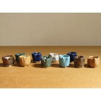 瀬戸焼のです。 6点セットです。 丸形均窯(キンヨウ、水色) 約 3.3cm× 約 2.1cm だ円フジグリーン 約 3.7cm × 約 3.1cm × 約 2cm 正角卯の斑(うのふ白色) 約 3.1cm × 約 3.1cm × 約 2.2cm 長角イエロー 約 3.7cm × 約 3.1cm × 約 2.1cm 長角モロン(赤色) 約 3.7cm × 約 3.1cm × 約 2.1cm 正角ナマコ(濃い紺色) 約 3cm × 約 3cm × 約 2.8cm 磁器土にクロマイトを3%混ぜて白地を作り釉薬をかけて酸化焼成しています。 釉薬を溶かすために焼成温度を1250℃位まで上げているので、焼き締りとても丈夫です。 瀬戸の業者からお取り寄せするので、出荷まで1週間ほどかかります。 お急ぎのお客様は先にご連絡をお願い致します。 (0566-41-2615) 瀬戸の業者と並行して販売しているので、突然欠品する事があります。 予めご了承ください。