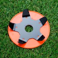 私自ら使用し実感しました。 本当に心地よい快適な作業でこんなに楽に草が刈れたのは初めてです。 柔らかい草が主な2時間余りの草刈作業ですが、いつもより大変短く感じ、もっと草を刈りたくなりました。 まるで草をほうきで掃くようにスムーズに切り進んで行きます。 材料はもちろん製造も全ての工程を一工場で製造した完全な日本製です。 しかも企業努力によるコストダウンで低価格を実現しました。 切れの良い刃を使用しますとエンジンを高回転にしなくてよいため燃料も少なくて済み大変経済的です。 シャークスリットで衝撃を吸収し、刃欠けが少なくなります。 石の少ない場所での長時間の雑草刈り・畦道刈りに特におすすめです。 外径255mm×刃数40枚穴明き軽量タイプ 両側面研磨薄刃仕上げサビに強い特殊表面処理 どのメーカーのエンジン刈払機にも取り付けられます。 マイナーチェンジのため、基盤の穴の数が違うものが届く場合がございます。 ご了承ください。