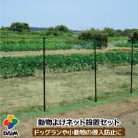 農作物を小動物から守ります! 簡単にネットを設置でき、小動物の侵入を防いで大切な作物を守ります。 ■家の周りに設置して、野良犬・野良猫の進入防止に、また、自分の家のペットの逃げ出し予防にも。 ■ちょっとしたペットサークル代わりに。 ■手作りの簡易ドッグランとして。 ※ペット用にご使用される場合は、ペットの特性環境等を考慮し、飼い主様の責任内でご使用ください。 ※ネットのサイズは1×10mとなりますが、設置時は地面に10cm程わせますので設置後のサイズは約90cm×10mとなります。 ■サイズ 高さ(約)90cm×長さ10m ■セット内容 ・防獣杭φ20mm×1200mm・・・6本 スチールパイプ樹脂コーティング、PE、スチール ・パッカー(防獣杭とネットを固定)・・・6個 ポリプロピレン ・Uピン20cm・・・5本 スチール ・防獣ネット1m×10m目合い16mm・・・1枚 ポリエチレン |