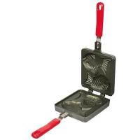 ふっ素加工でお手入れ簡単なたい焼き器。 一度に2匹焼けます。 製造国:韓国 素材・材質:本体:アルミニウム合金(内面:ふっ素樹脂加工、外面:焼付塗装)取っ手:メラミン樹脂(耐熱温度120度) 商品サイズ:(約)全長35×幅14.5×高さ5cm 仕様:魚の型の大きさ:W13×D7.5×H2.5cmガス火専用※IHには対応しておりません。