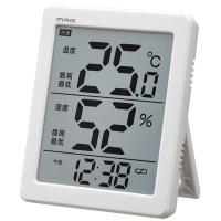 デジタル温湿度計CR1100Bは、温度は0.1℃毎、湿度は1%毎に、デジタル表示するシンプルな温度・湿度計。 液晶部分の上が温度計、下が湿度計になります。 さらに温度・湿度それぞれの最高・最低温湿度を自動メモリーしてくれます。 RESETボタンを押すと最高最低温湿度のメモリが初期化されます。 例えば朝にRESETボタンを押せば、その空間の一日の温度と湿度の変化(最高温湿度と最低温湿度)がわかり便利な機能です。 さらに温度18〜28℃、湿度45〜64%の範囲内の場合、それぞれ画面左にニコニコマークが、範囲外の場合、不快マークが表示されるので一目で快適な温湿度かが判ります。 86×81×17mm・重さ77gの小型サイズながら、大画面液晶(62×40mm)。 スタンドを起こして卓上に、背面のマグネットで壁に貼り付けたり、フック穴で壁掛けにも使えます。 温度計メーカー、クレセル製。 1〜3点まで普通郵便(定形外)でのお届けも可能(全国一律320円)。 4点〜で送料無料。 ・測定範囲:温度/-9.9〜+50.0℃、湿度/20〜95% ....... |