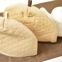保温性の高いキルティングを使用したティーポット用のカバーです。 最後まで紅茶を温かくお召し上がり頂けます。 カーブをつけたオリジナルのデザインにより、ティーポットに被せた際にティーコジーの下部がテーブルから浮かず、より高い保温性があります。 染色には無農薬の茶葉(スリランカ産ウバ)を使用しております。 (染色の際には薬品等の添加物は一切使用しておりません。 ) 本製品は、染料として天然素材を使用し、手染めをしている為、製品により色味が違うことがございます。 1点1点ハンドメイドとなっておりますので、多少の色むらや微妙なサイズの違いにつきましては、ご了承ください。 (サイズ)H約19cm×W約24cm |