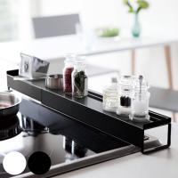 山崎実業の"タワーシリーズ"はモノトーンを基調にシンプルでスタイリッシュなデザインと使いやすさが人気のブランド。 グリルの排気口についてしまう汚れをガードするカバーが登場致しました。 コンロのお掃除が大変なのはご存知の通り。 特に大変なのはグリル周りですよね。 こちらの「排気口カバー」はその名の通り調理中に飛び散った油や汚れから排気口をしっかり守ってくれます。 汚れの予防にピッタリなアイテムです。 また、スパイスや調味料などが置けるガード付きの棚で排気口上を上手に活用♪ 長さも調節でき、幅約43cm〜80cmまでのビルトインガスコンロ、IHクッキングヒーターに対応しています。 グリル使用時は後ろへずらしてご使用下さい。