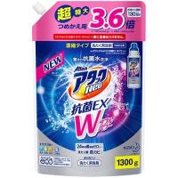 税抜3695円以上送料無料/アタックNeo 抗菌EX Wパワー 超特大サイズ つめかえ用 1300g/日用品[洗濯用品/洗濯洗剤/液体洗剤 衣類用]/ブランド:アタックNeo(アタックネオ)/発売元:花王/内容量:1300g/衣類、洗たく水、洗たく槽に働く濃縮タイプの液体洗剤(衣類用) つめかえ用です。 衣類の生乾き臭・汗臭・靴下臭、ぬれ戻り臭を抑えます。 洗たく水への菌(ニオイ菌・カビ菌)移りも抑え、おふろの残り湯も使えます。 洗たく槽の防カビ・防臭も。 漂白剤配合。 色柄物にも安心。 すすぎ1回で節水・節電、時短に。 柔軟剤も使えます。 蛍光剤無配合。 柔軟剤の香り引き立つリフレッシュアクアの香り(微香性)。 *すべてのニオイ菌を抑えるわけではありません。