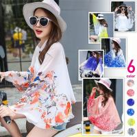 UVカットポンチョ ストール シフォン 総柄 ワンボタン ゆるシルエット 3WAY ショート丈/メール便無料 2,180円 |