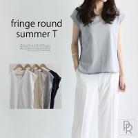 さりげないフリンジでこなれ感を演出する、新作トップスをご紹介致します。 ベーシックなTシャツよりも袖が短めになったデザインなので、 より女性らしい着こなしを楽しんで頂けます。 ノースリーブが苦手な方にもおすすめです ベーシックデザインのTシャツに今季トレンドのフリンジを施した、おしゃれ感満載の一枚。 裾部分とVネックラインが丸みを帯びていて、 カジュアルながらも女性らしい雰囲気を演出してくれます。 バック部分には切替を施してシンプルすぎず、後ろ姿のディテールにもしっかりこだわりました。 柔らかいテクスチャーのコットン100%素材を使用し、快適な着心地と優しい肌触りが魅力♪ ベージュ着用モデル(169cm)はストライプショートパンツを合わせて、 流行をバッチリ押さえた、夏の爽やかコーデに。 スカイ着用モデル(167cm)は、白ガウチョパンツと オープントゥパンプスとのきれいめスタイルに仕上げました....... |