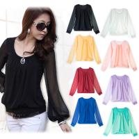 メール便送料無料 シフォン チュニック Uネック全8色 カットソー トップス 長袖 フリル 黒 ブルー ブラウス セール 春新作 レディース 春服 春物 1,420円 |