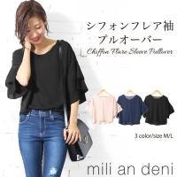 ★オフプラ市場★シフォン フレア袖 プルオーバー トップス カットソー 5分袖 半袖 レディース メール便(郵2) 1,290円 |