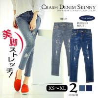 スキニー デニム クラッシュ加工 ダメージ加工 ジーンズ ブルー キレイ目 レディース 1,480円 |