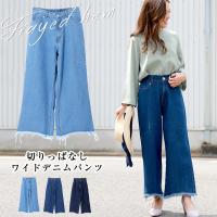 デニムワイドパンツ レディース カットオフ ハイウエスト ワイドパンツ デニムワイド ロング フリンジ フレイドヘム 裾切りっぱなし 2,646円 |