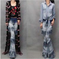 二枚送料無料グラデーションデニムパンツ/フリンジ/美シルエット/人魚マーメイドパンツ/ロング/ジーンズ/ベルボトム/レディース/ヘビメタ風/パンタロン/タイト 4,500円 |