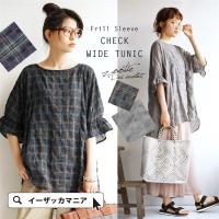 チュニック 半袖 ゆったり 五分袖 ビッグシルエット オーバーシルエット レディース チェック フリル トップス 2017春夏 新作 3,132円 |