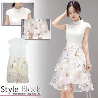 2017春夏新作 春 夏 ワンピース ワンピ 花柄 フラワー ボタニカル フレア ミニ ひざ丈 シフォン シースルー 立体フラワー ノースリーブ レディース 3,769円 |