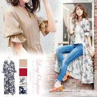 ワンピース/シャツワンピ/カーディガン/花柄/七分袖/Vネック/ウエストリボン/スキッパー/MD 2,980円 |