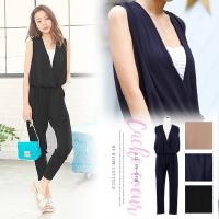 オールインワン/サロペット/体型カバー/Vネック/ロンパース/ノースリーブ/レーヨン混/MD 1,790円 |