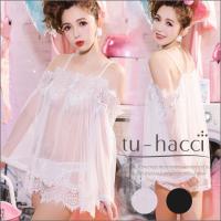 ルームウェア/オフショルダーシースルーチュニック+ショーツ2color ブラック/ホワイト 2,280円 |