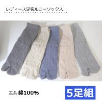 お得なレディース足袋ソックスです。 5足組での販売となります。 手編み風のルミーソックスなので涼しげです。 表糸綿100%なので爽やかな履き心地。 グレー、ベージュ、ブルー、ピンク、薄グレーが各1足の 5足セットになります。 メール便送料無料でこの価格! 素材/綿・ポリエステル・その他 サイズ/22〜24cm 原産国/中国(日本企画) |